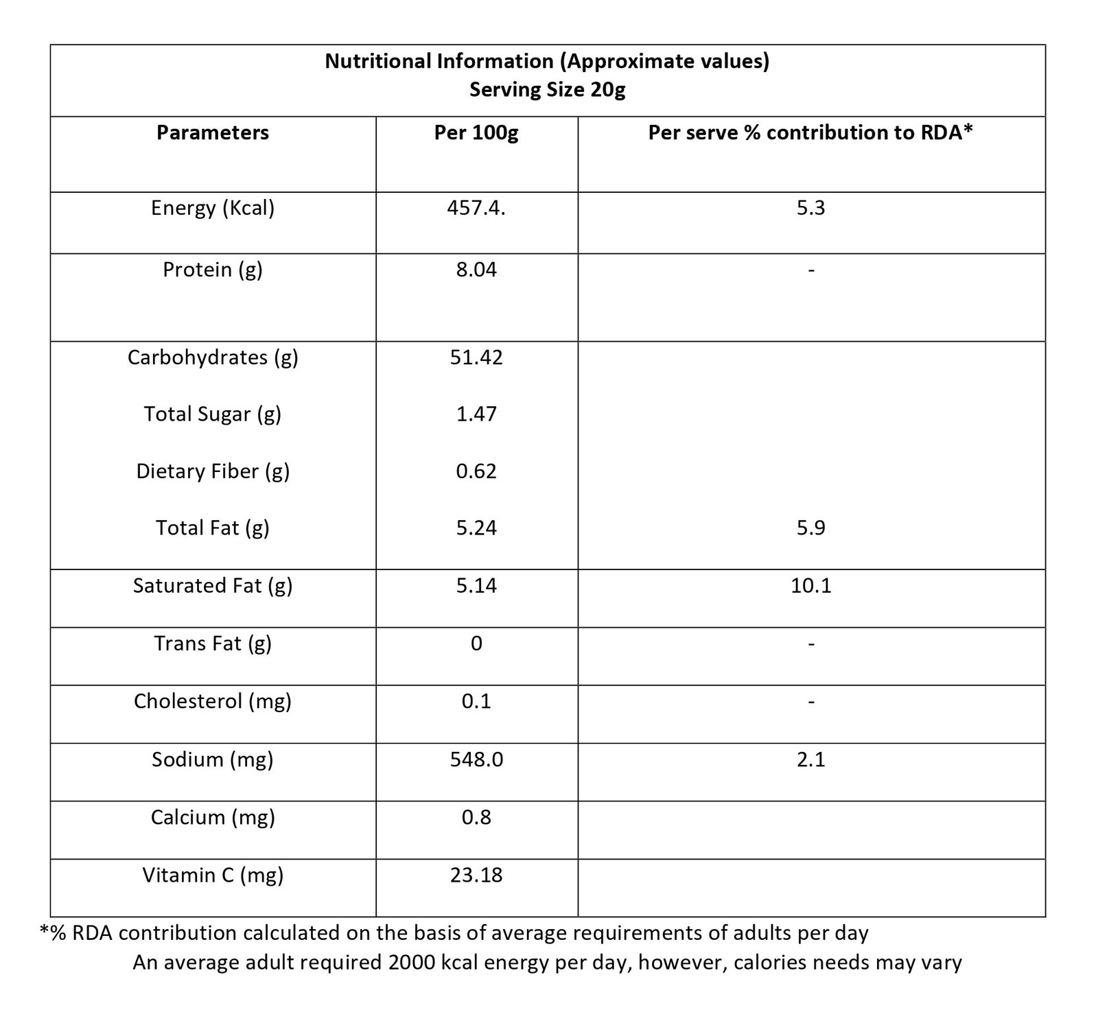 Rice Meal, Corn Meal, Edible Vegetable Oil (Rice Bran Oil), Seasoning [Iodized Salt, Spices & Condiments (Fennel, Chilli, Cumin, Dried Mango, Pepper, Coriander, Mint, Turmeric, Ginger, Clove, Cinnamon), Maltodextrin, Dehydrated Vegetables (Onion Powder, Garlic Powder), Sugar, Acidity Regulator (INS 330), Flavour Enhancers (INS 627, INS 631), Anti-caking Agent (INS 551)].